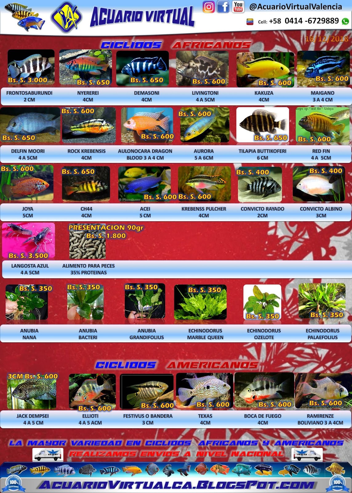 Stock. Catalogo 18/12/2018. Ciclidos Africanos y Americanos. Alimento Disponibles. Valencia. Inf. 0414-6729889.